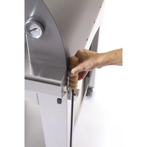 Elle se fait grâce au réglage de sortie des fumées qui se trouve sur le conduit et à la gestion de l’ouverture/ fermeture de la porte de la bouche du feu. Ainsi, en plus des pizzas et calzones, vous pourrez également mijoter en cuisson lente des plats de légumes, des viandes ou autres poissons.