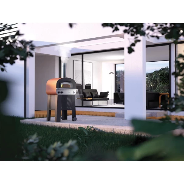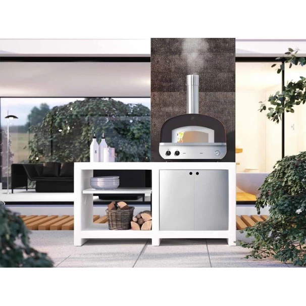 Le four à pizza Fontana peut fonctionner à la fois avec du bois et du gaz, pour la première fois sans avoir à démonter et à assembler les brûleurs, ou à insérer des cloisons et des protections de sécurité compliquées.
