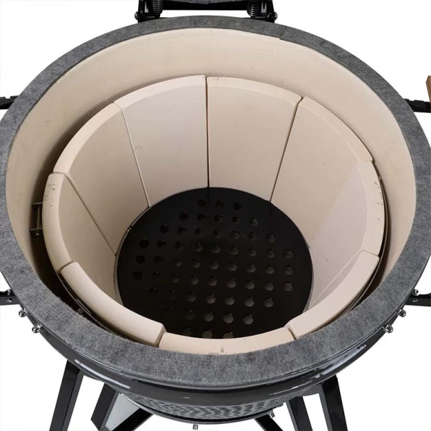 - Le kamado est sur un châssis, qui garantit que le kamado soit toujours stable et fermement en place.