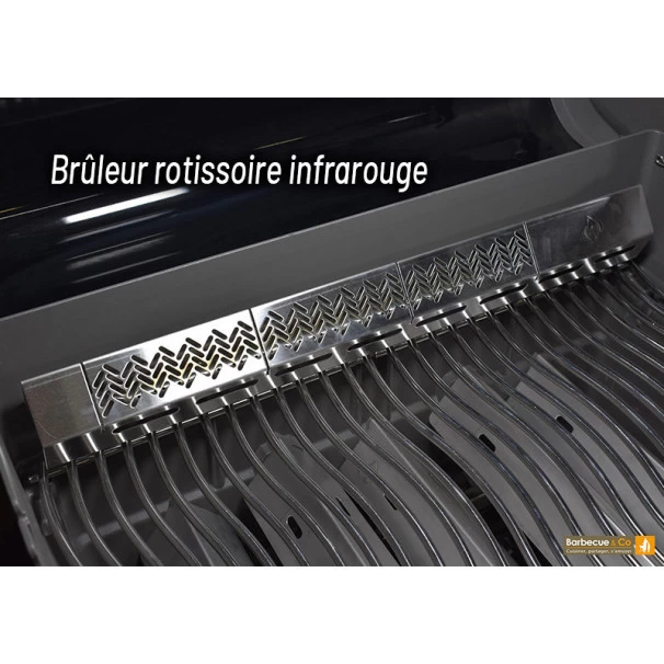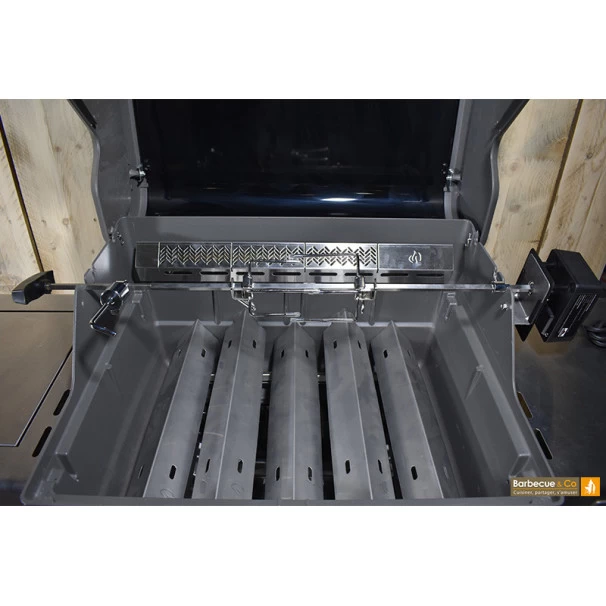 - Brûleur arrière infrarouge pour maîtriser parfaitement la cuisson au tourne broche