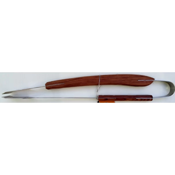 Cette pince Barbecue Republic convient aux barbecues gaz ou charbon et/ou aux planchas. Elle permet de retourner n’importe quel aliment, de la viande, des légumes, du poisson. Cet accessoire barbecue est doté de deux manches en bois de palissandre pour une meilleure prise en main. Cet accessoire barbecue est résistant face à la corrosion. A découvrir dans nos magasins Barbecue & Co.